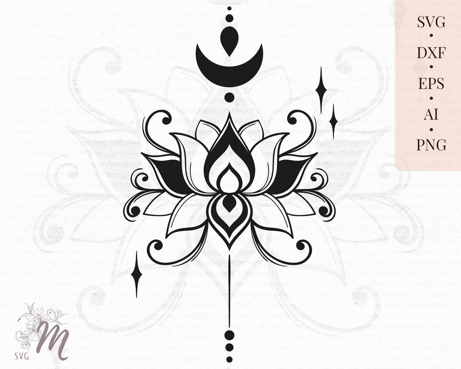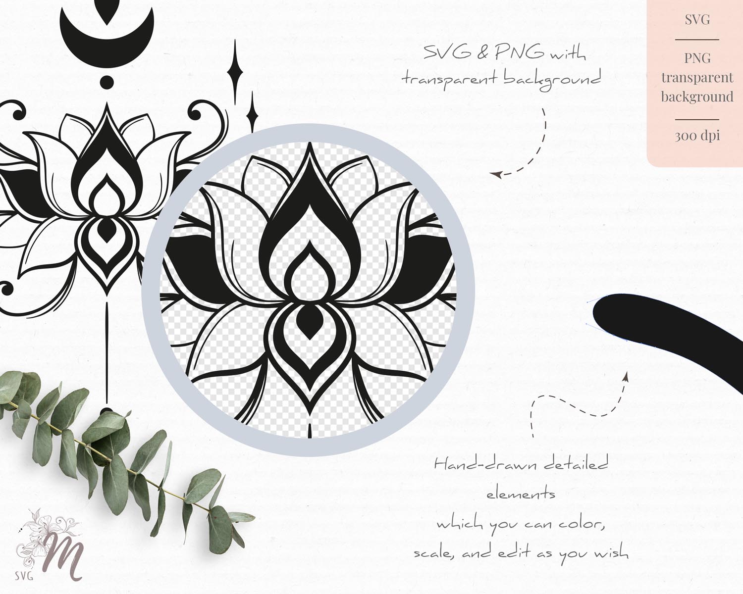 Floral SVG is a hand-drawn boho and mystical SVG bundle with flowers and moon designs, perfect for Cricut, sublimation, logos, tattoos, apparel, and commercial-use creative projects.