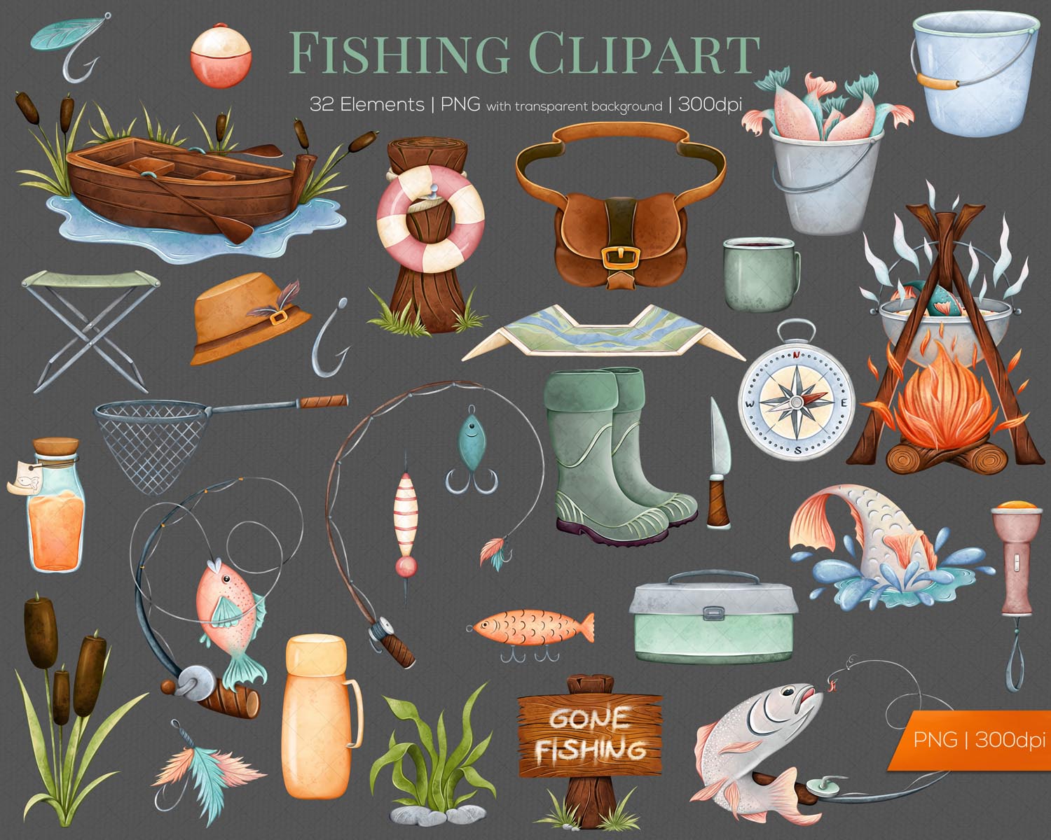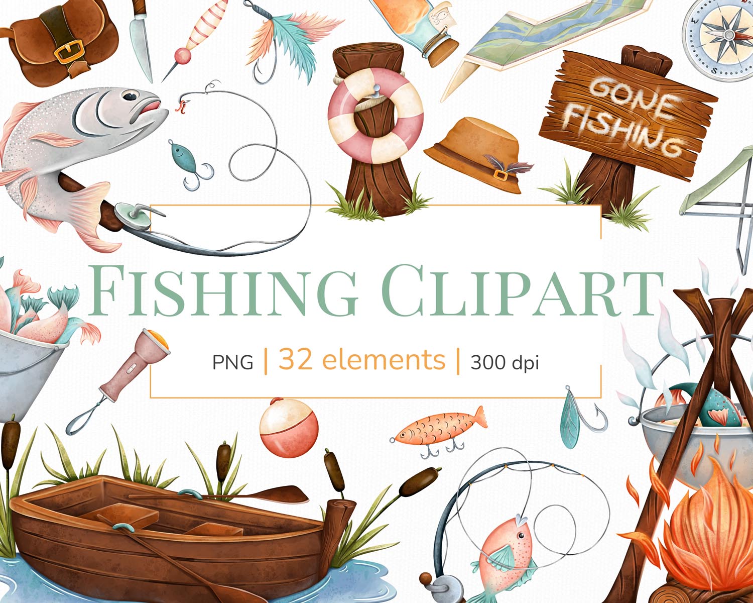 Fishing Clipart is a charming digital clipart collection of 32 hand-drawn watercolor fishing and camping elements, inspired by peaceful summer days outdoors and cozy family adventures. This instant download set is perfect for creating warm, nature-themed designs for both print and digital use.