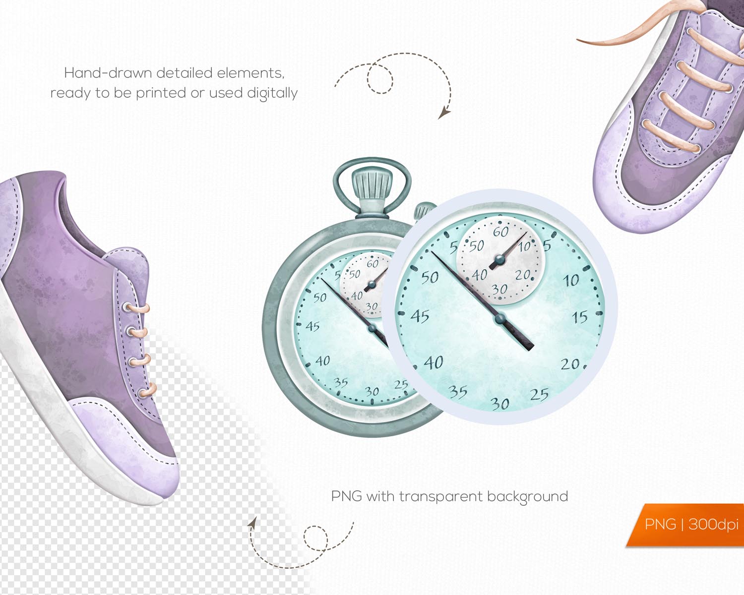 Fitness Clipart is a 52-piece hand-drawn watercolor gym and workout PNG set, perfect for sublimation, healthy living designs, stickers, planners, and motivational fitness projects.