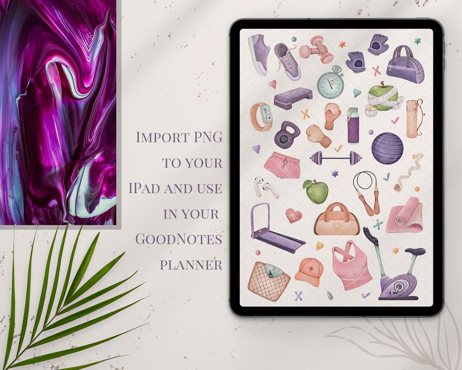 You can also use the elements as digital stickers in GoodNotes or other digital planner apps – just unzip and insert them into your spreads.
