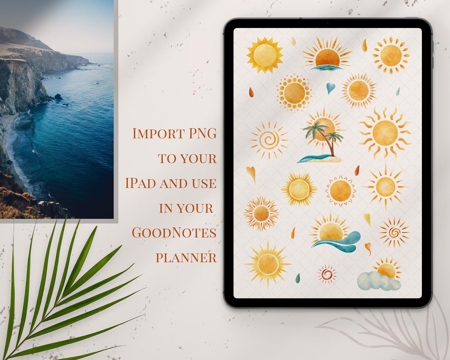 Bring warmth and joy to your designs with this beautiful collection of 29 hand-drawn watercolor sun clipart elements. Perfect for logos, stickers, invitations, planners, scrapbooking, website design, and more. Each sun illustration is crafted in high-quality PNG format with transparent backgrounds, making it easy to use in both digital and print projects.